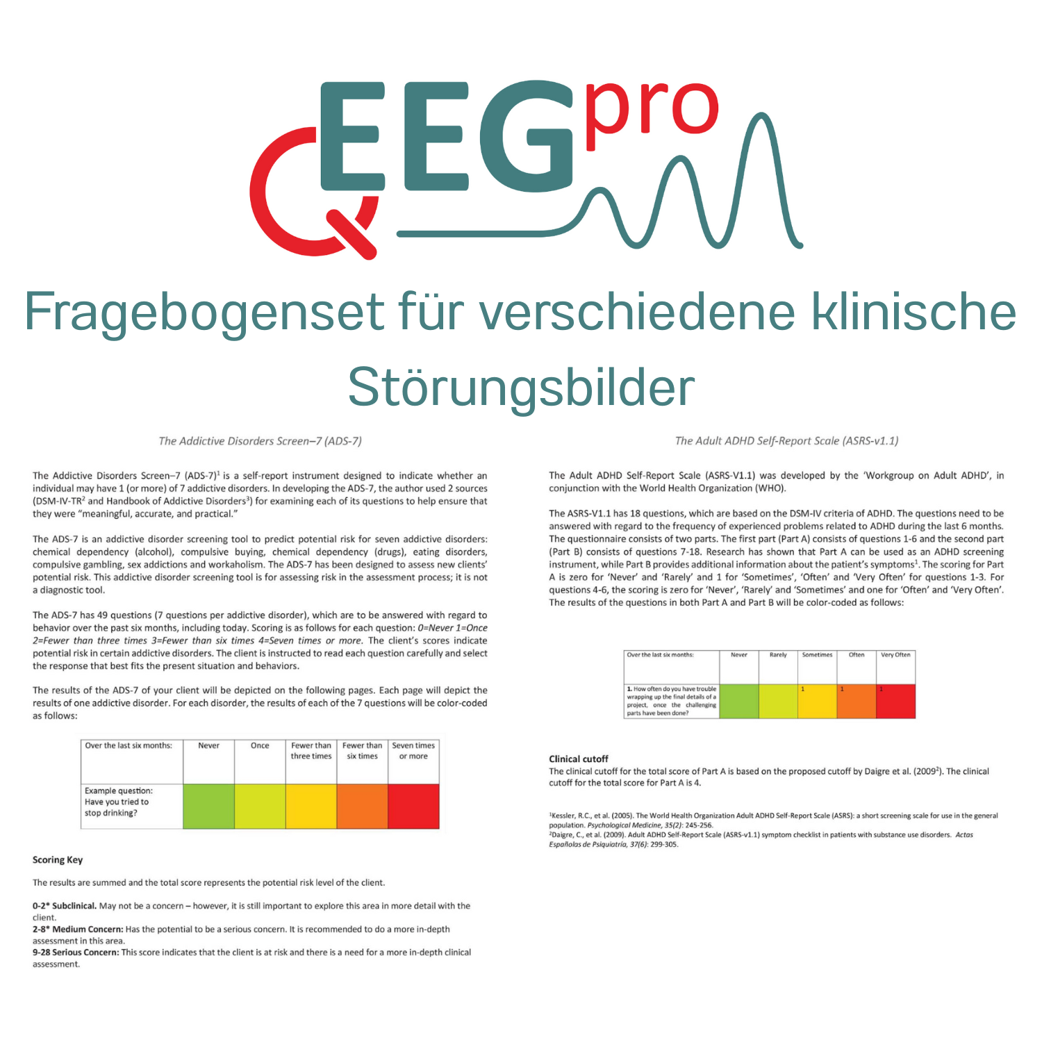 Zusätzlich deckt das Fragebogenset ein breites Spektrum klinischer Störungsbilder ab: