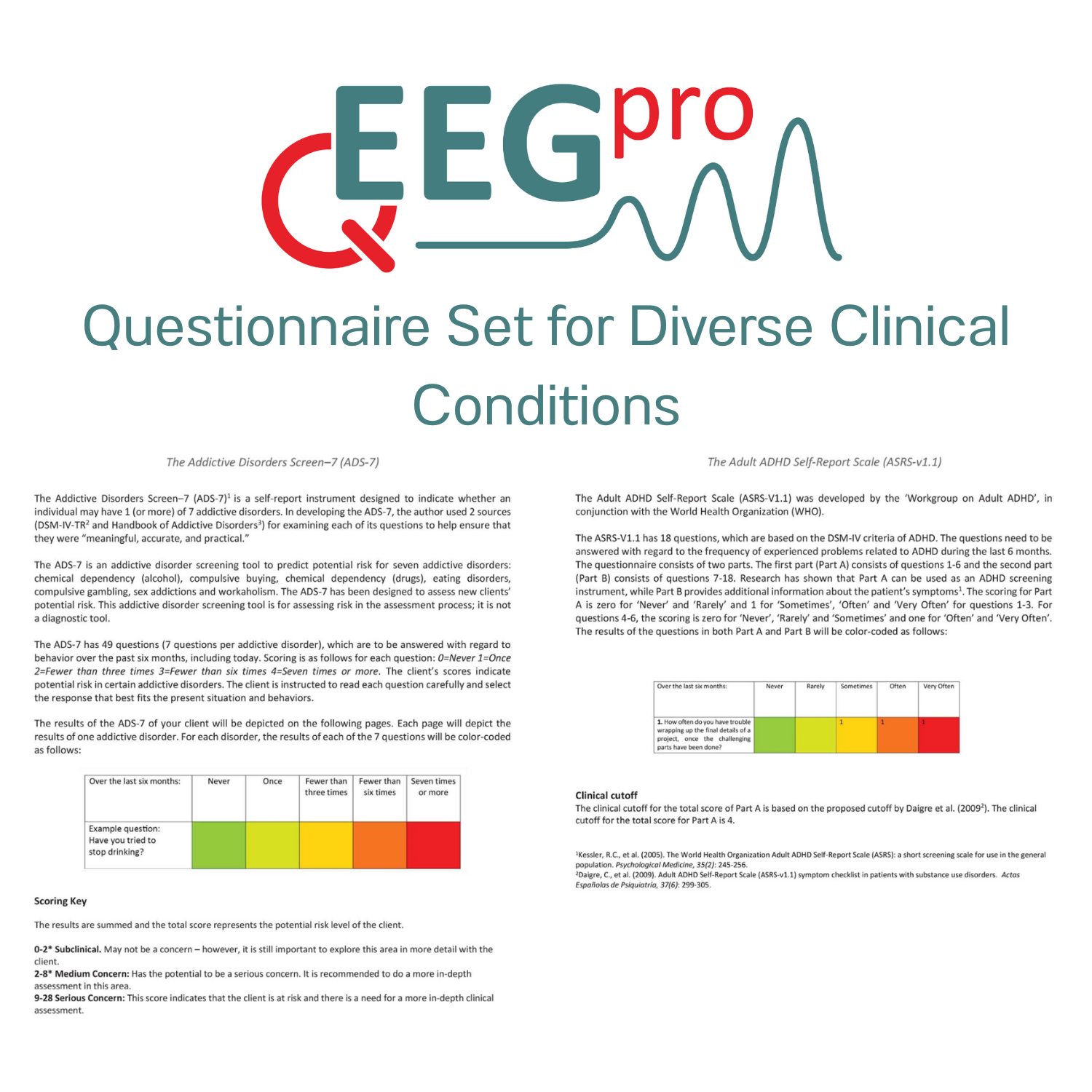 Verbessern Sie Ihre diagnostischen Entscheidungen und verfolgen Sie Behandlungsergebnisse mit dem qEEG-Pro Psychological Assessment-Abonnement. Diese Jahresmitgliedschaft bietet Ihnen Online-Zugang zu einer vollständigen Batterie standardisierter neuropsychologischer Tests und klinischer Fragebögen – mit automatischer Auswertung und klaren Berichten, die Sie mit Patienten oder überweisenden Fachpersonen teilen können.