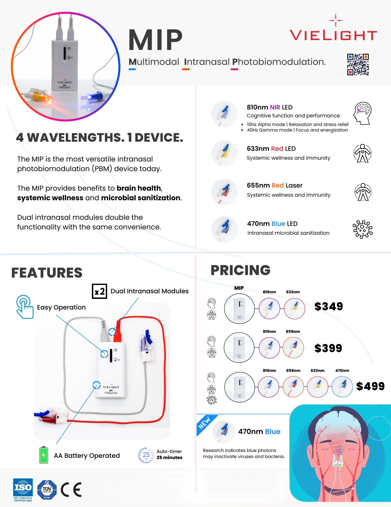 The MIP-633 Red nasal applicator is designed for systemic photobiomodulation.
